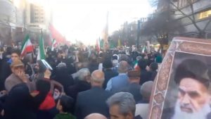 به گزارش گواهان و رسانههای رسمی، شرکتکنندگان با در دست داشتن پرچمهای ایران و تصاویر آیتالله علی خامنهای، رهبر جمهوری اسلامی، خیابانهای اطراف محل برگزاری را پر کرده بودند.