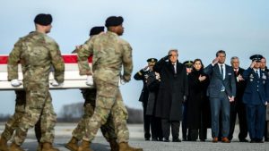 دونالد ترامپ، رئیسجمهور ایالات متحده، روز چهارشنبه در مراسم رسمی تشییع و انتقال اجساد سه سرباز امریکایی که در حملهای در سوریه جان باخته بودند، حضور یافت. اجساد این سربازان در تابوتهایی پوشیده از پرچم امریکا به کشور بازگردانده شد.